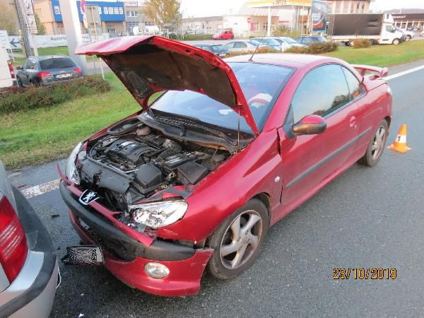 První dopravní nehoda na příjezdu do Hradce směrem od Třebechovic.