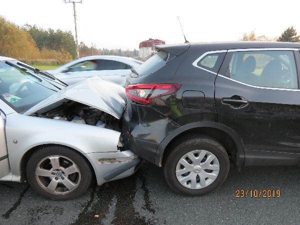 Kuriózní nehoda. Osobní auto bourala skoro ve stejných místech dvakrát během krátké chvíle!