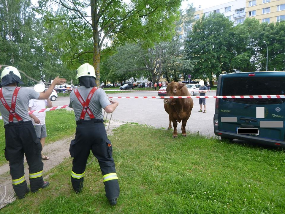 Býk se vydal na nedělní procházku, došel až na sídliště