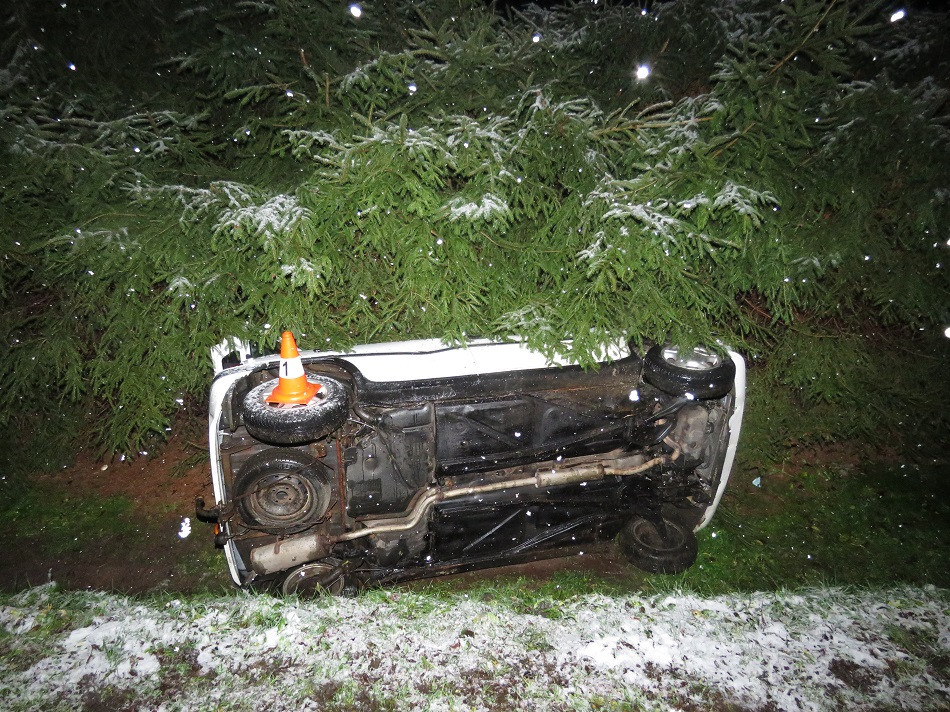 Dvě promile ho od řízení nezastavily. Sedl za volant a následně skončil v příkopě