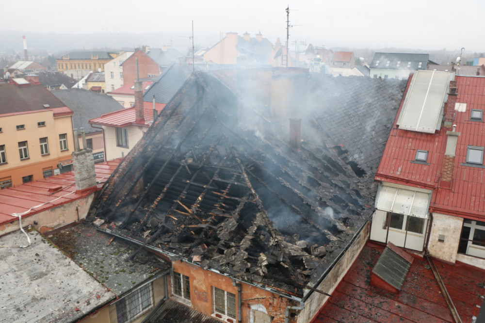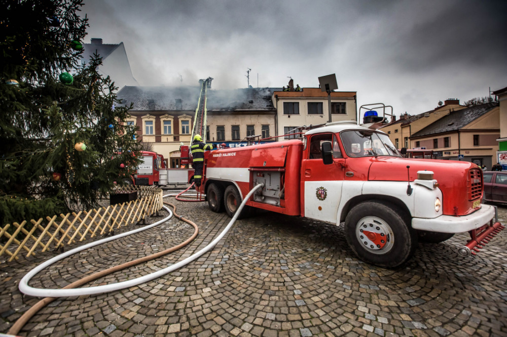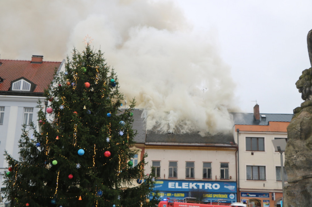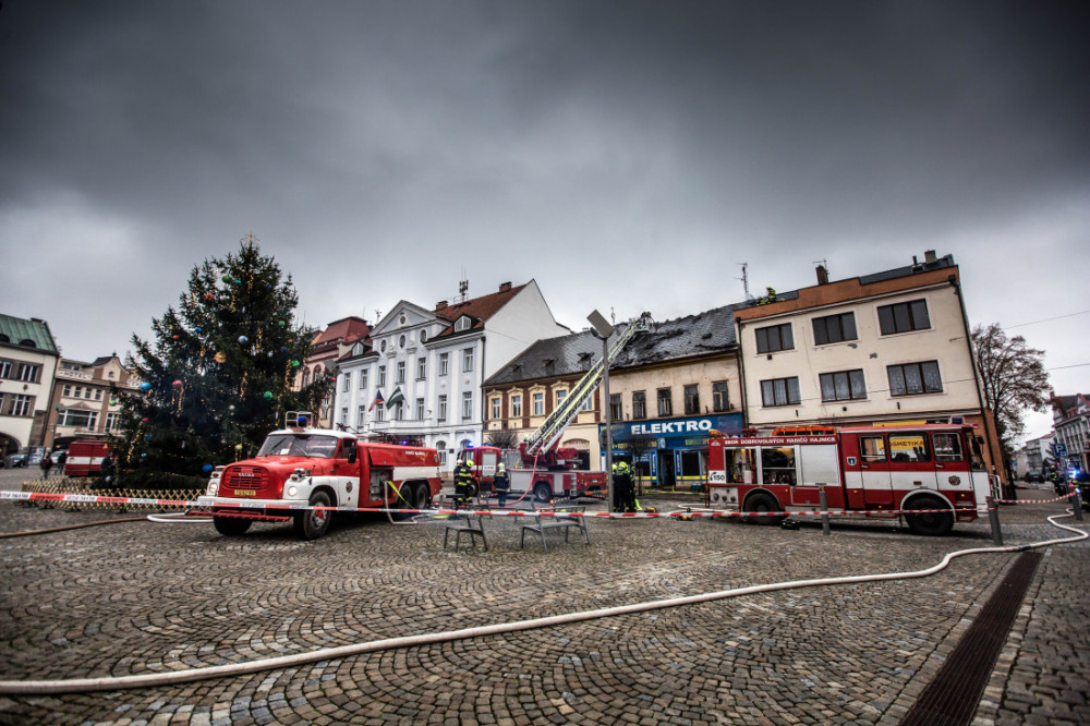 FOTOGALERIE: Požár na náměstí ve Dvoře Králové očima hasičů. Škoda atakuje hranici tří milionů