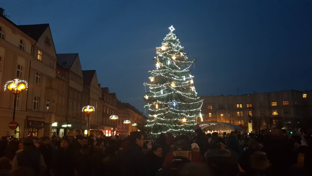 Hradec poprvé rozsvítil vánoční výzdobu po celém městě, desítky lidí to sledovaly přímo z Masarykova náměstí