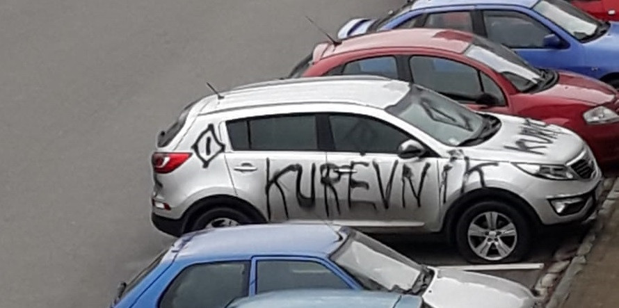 Policie hledá pachatele, který v Hradci posprejoval auto hanlivými výrazy a propíchl pneumatiky