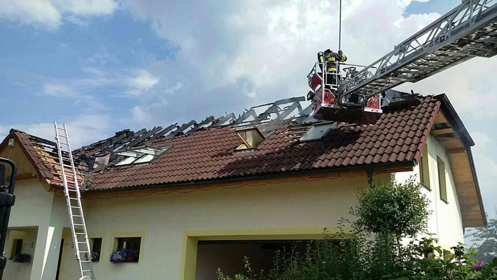 V Býšti hořela střecha rodinného domu. Zásah komplikovaly fotovoltaické panely