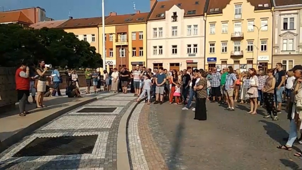 Proti Babišovi protestovaly v Hradci stovky lidí