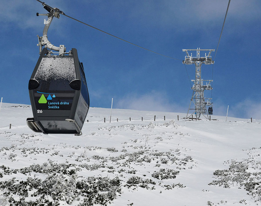 V Krkonoších připadlo 20 cm sněhu. Kabinová lanovka na Sněžku dnes kvůli silnému větru opět nejezdí
