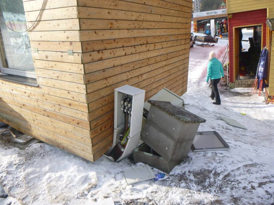 Náraz pásové čtyřkolky do technické budovy vleku