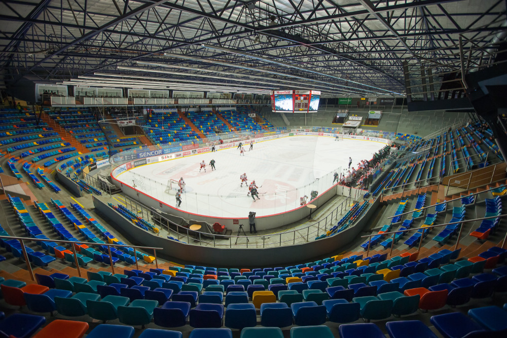 Prázdná hala během zápasu Hradce Králové a Karlových Varů.