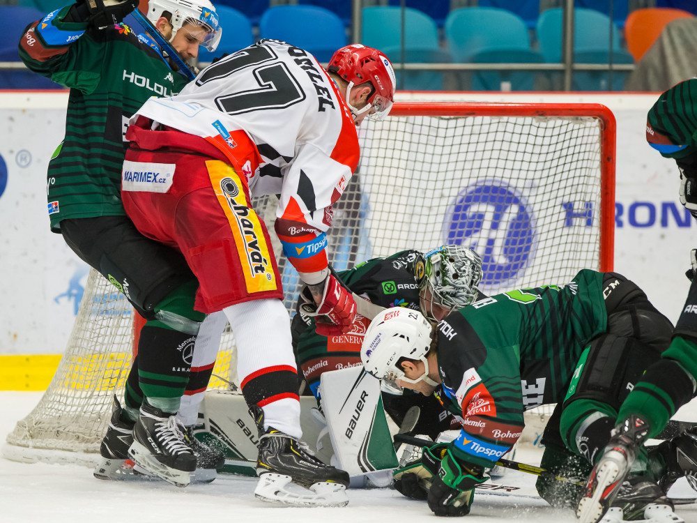 FOTO: Zápas bez fanoušků Mountfield proti Karlovým Varům prohrál 3:5