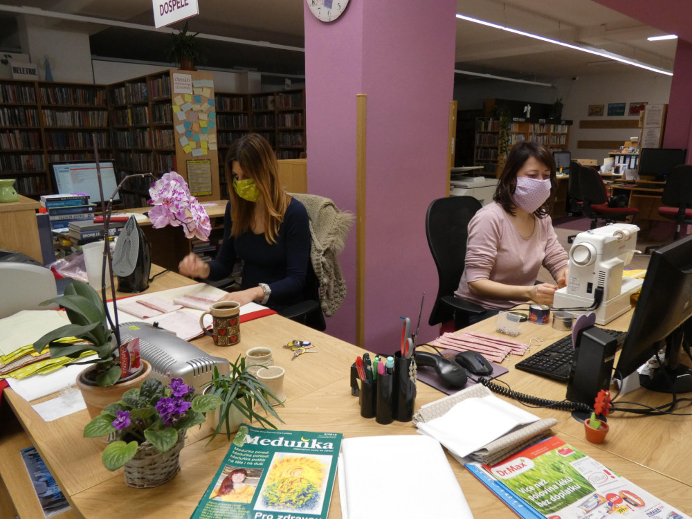 Šití ústenek na jedné ze základních škol v Trtunově.