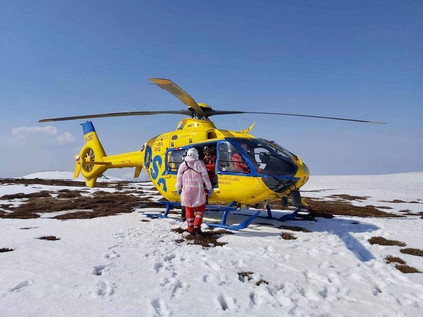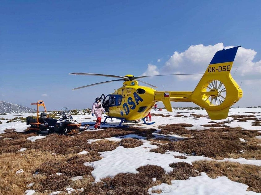 Vrtulník záchranářů při záchraně skialpinisty ve Velké Studniční jámě v Krkonoších