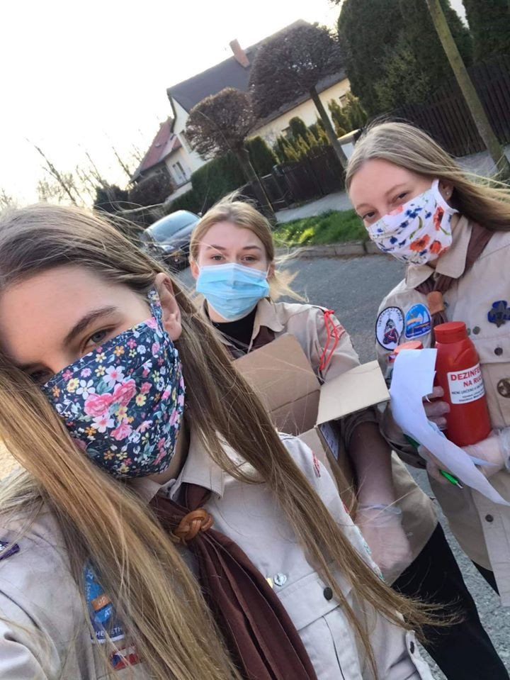 Skauti roznášeli v Rychnově dezinfekci v lahvích od kečupů