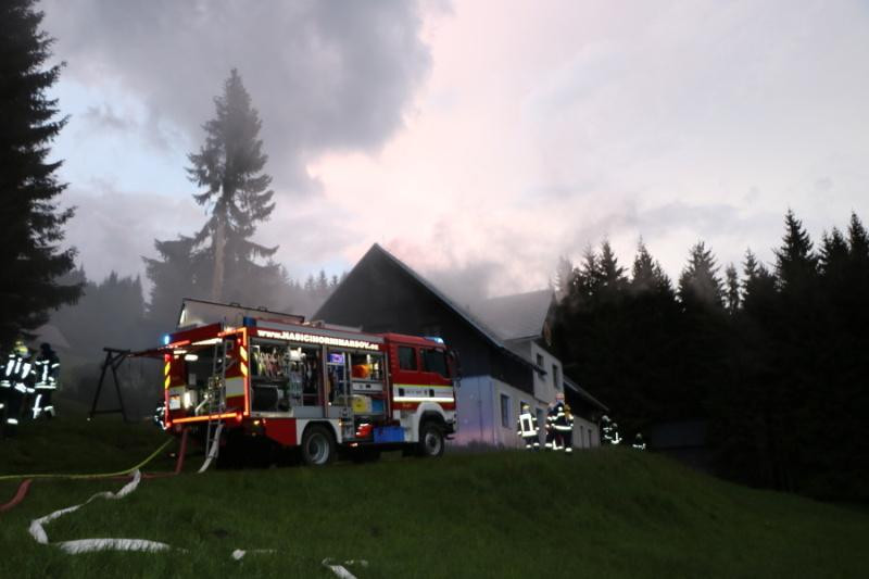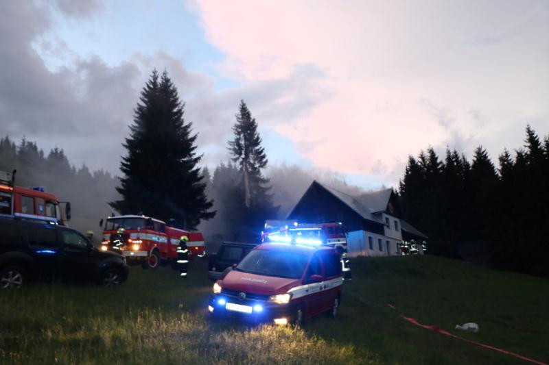 Hasiči vyjížděli k požáru chaty do Horního Maršova, pravděpodobně ji zapálil blesk