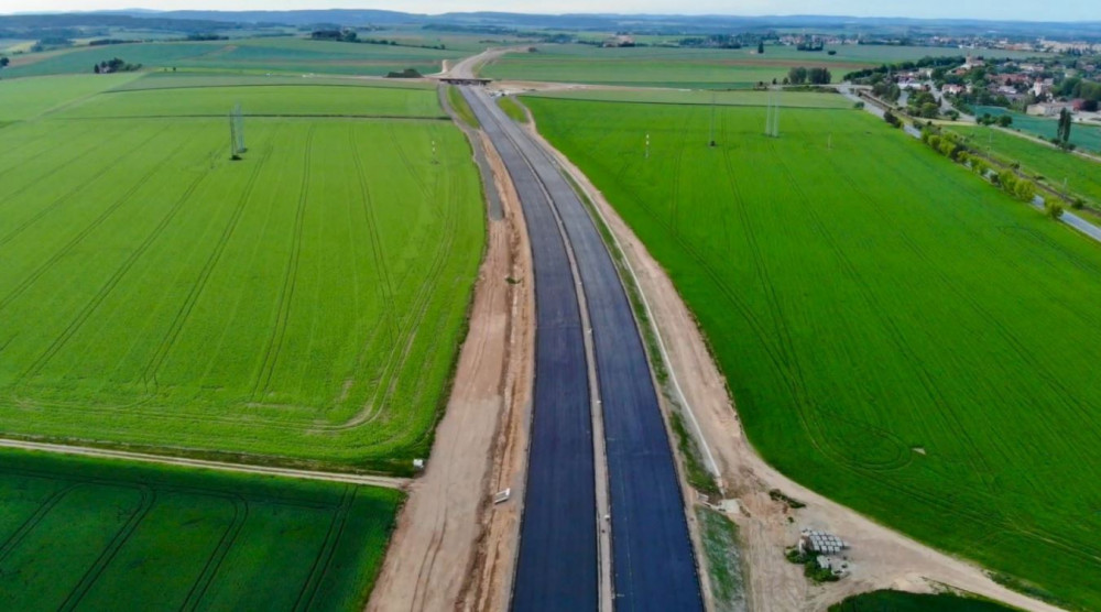 VIDEO: Takhle vypadá stavba D11 u Hradce Králové z výšky. Na některých místech ž se pokládá asfalt