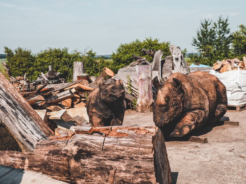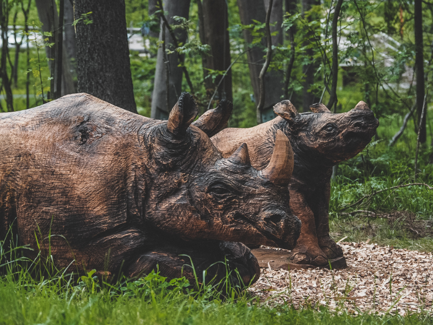 Nosorožci vyřezaní ze dřeva