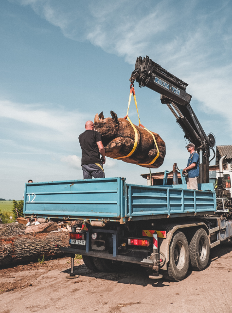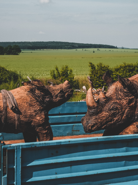Převoz nosorožců vytesaných ze dřeva