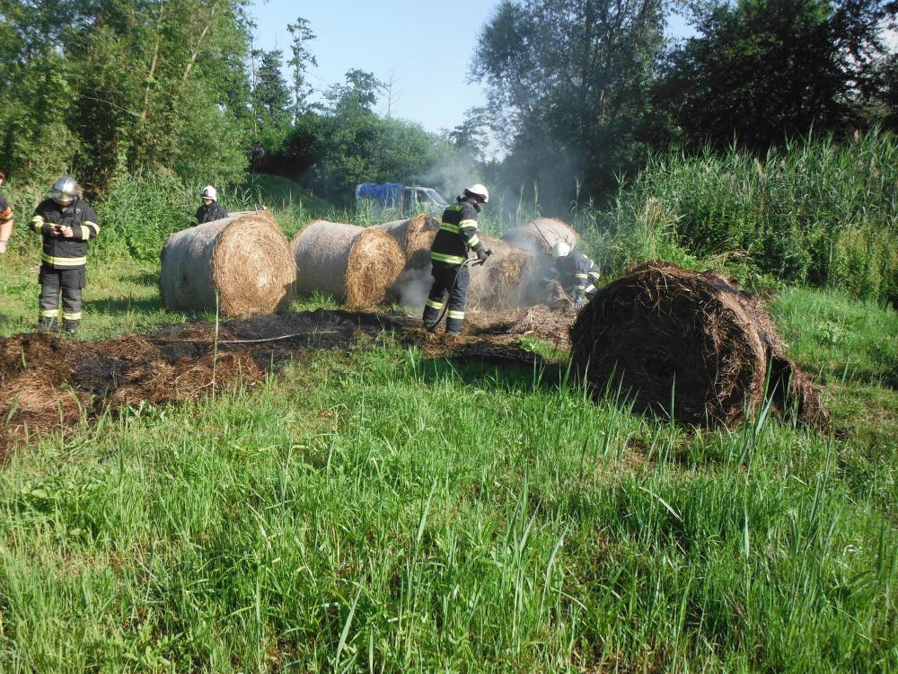 Požár balíků sena v Lázních Bělohrad