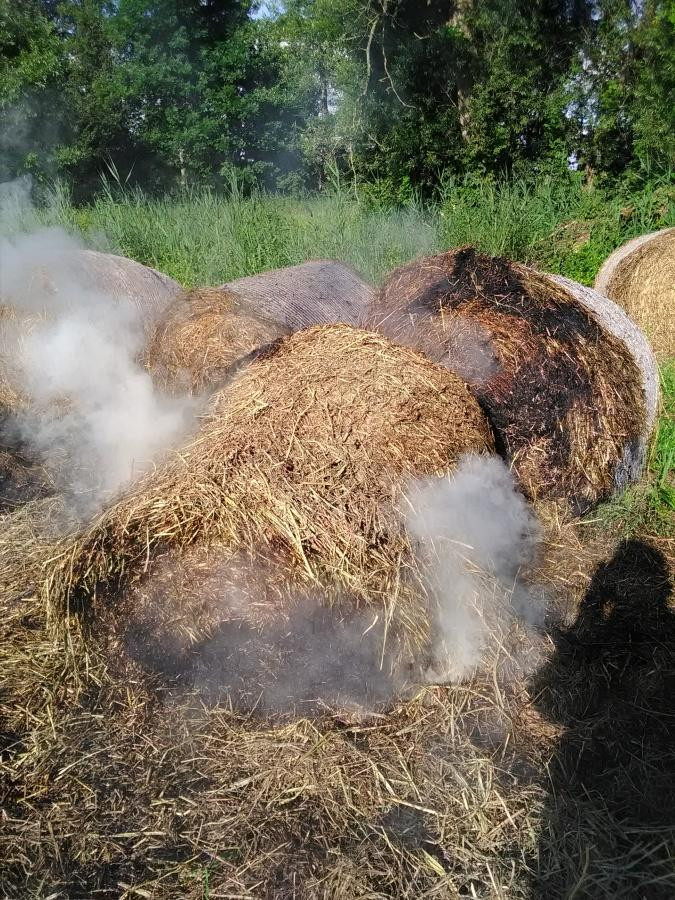 Požár balíků sena v Lázních Bělohrad