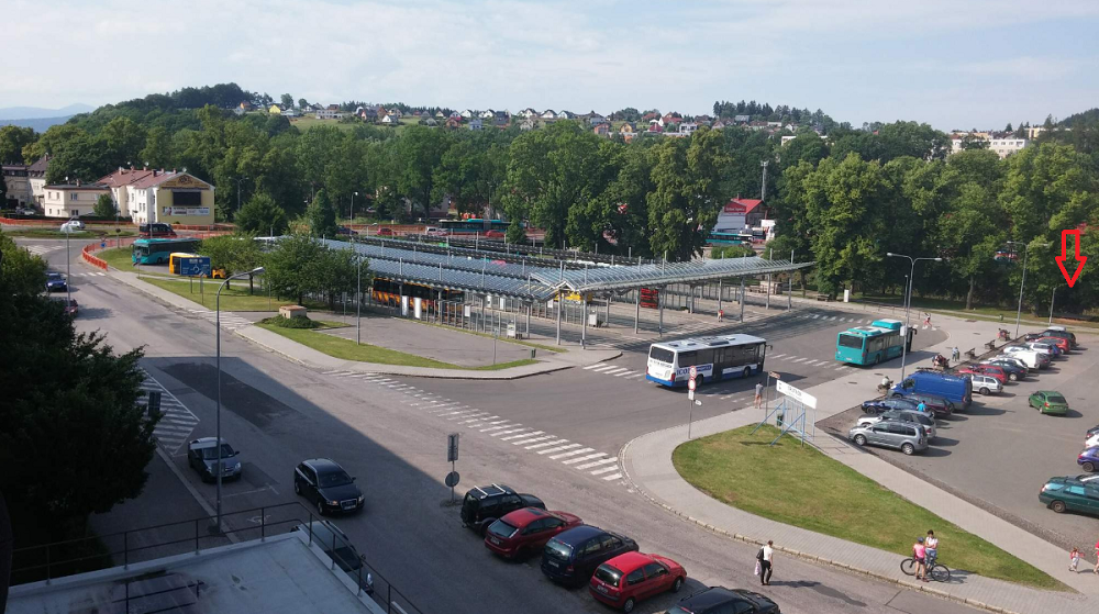 malé parkoviště u autobusového nádraží v Trutnově