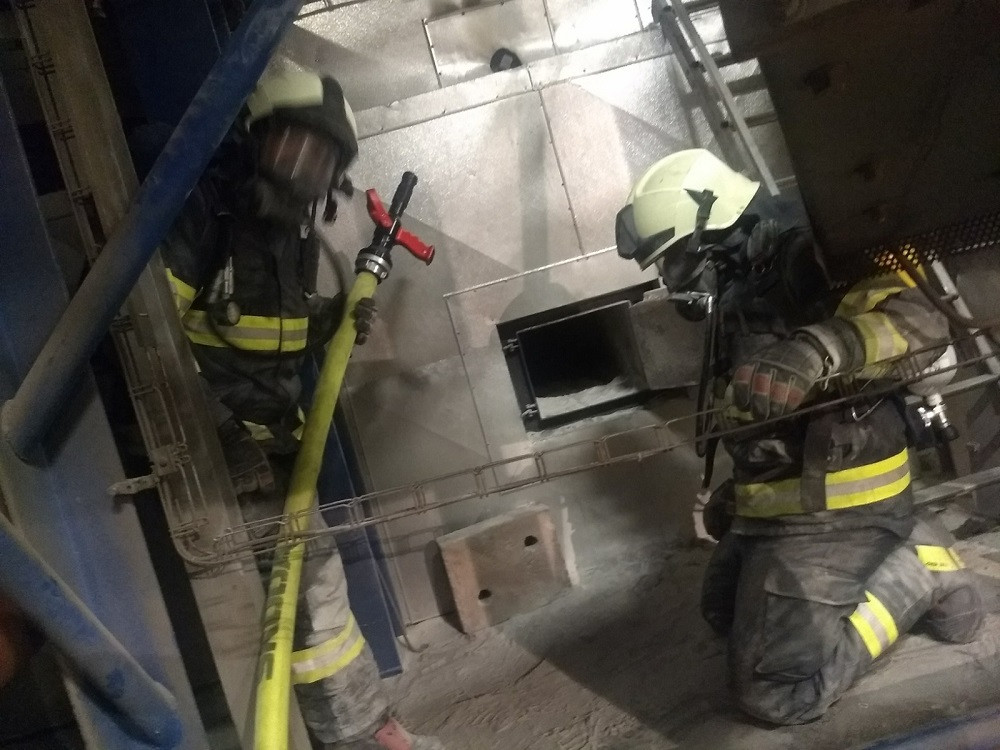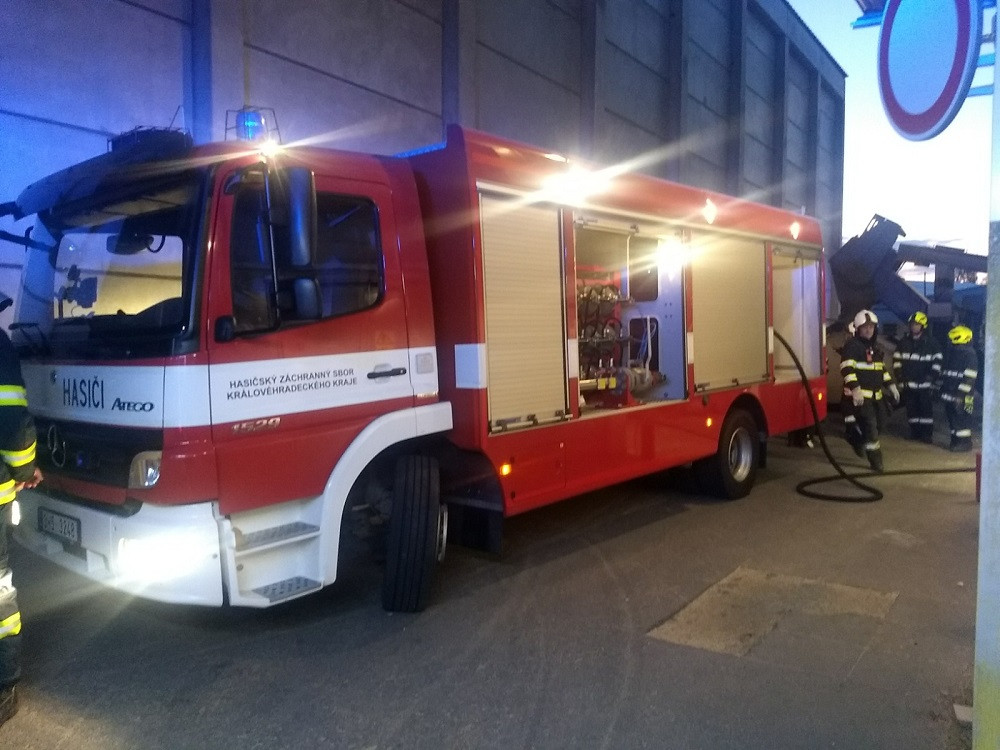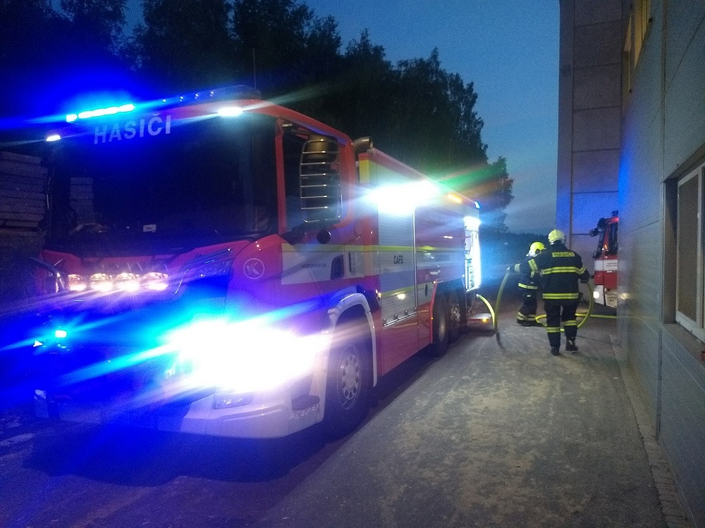 Hasiči u požáru kotle na biomasu v Borohrádku