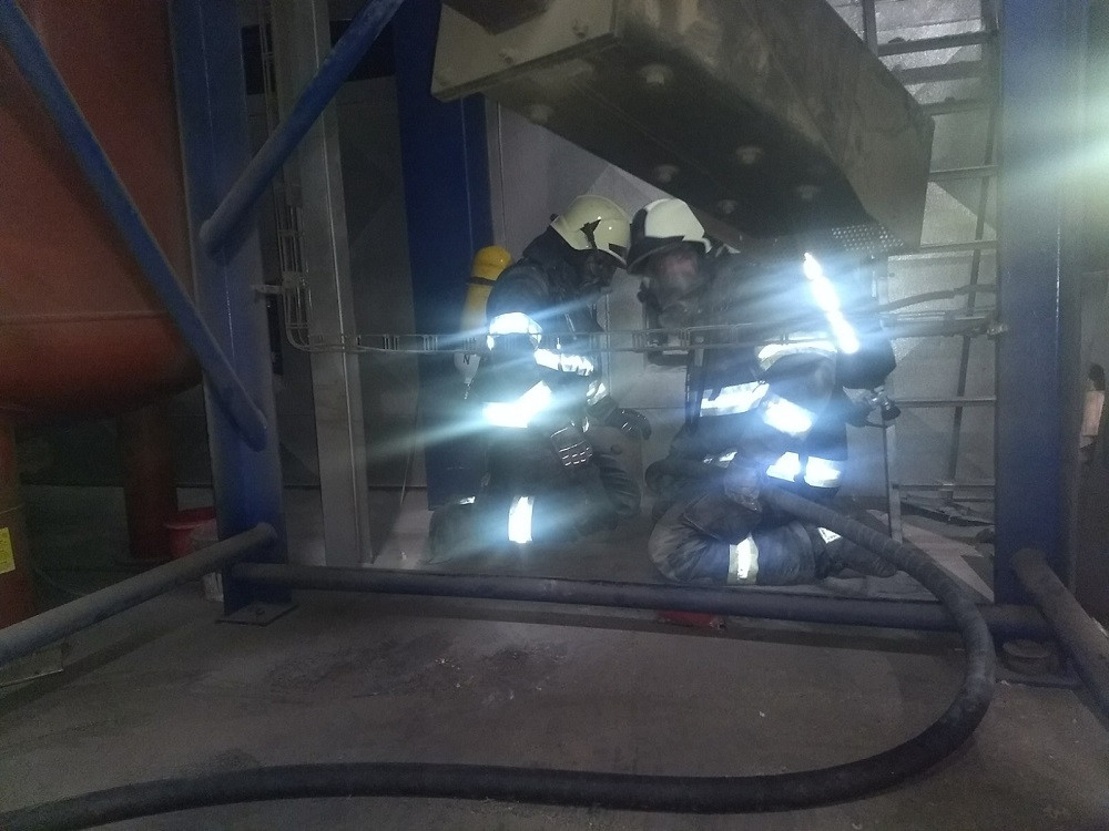 Hasiči u požáru kotle na biomasu v Borohrádku