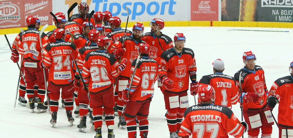 Hokejisté hradeckého Mountfieldu po včerejším derby v Pardubicích
