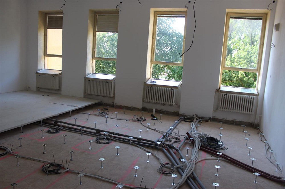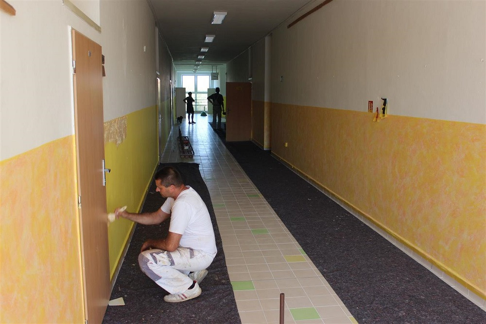 Práce na chodbě v horním patře ZŠ Železnická