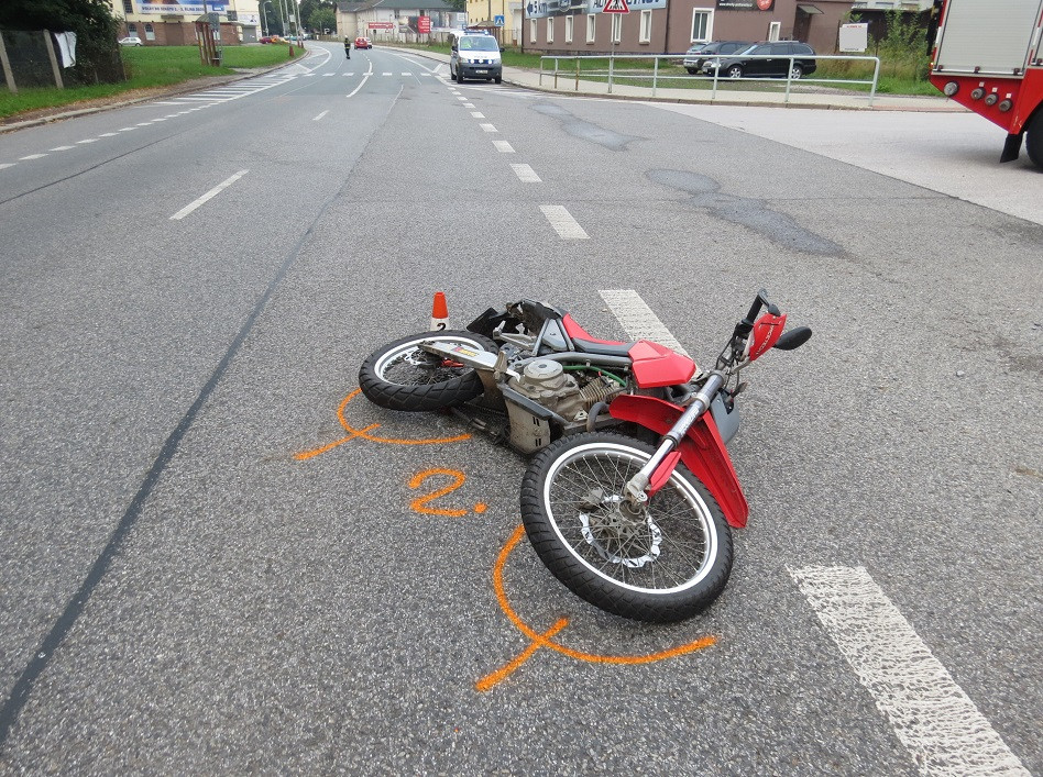 Havarovaný motocykl z dnešní nehody v Trutnově