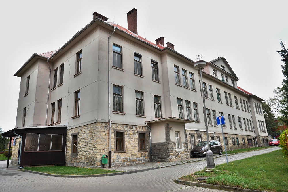 Třípatrová nemocniční budova, která před lety sloužila jako chirurgie a porodnice