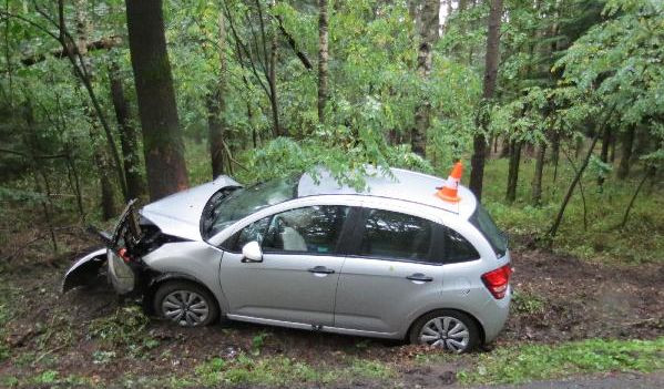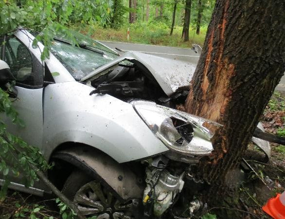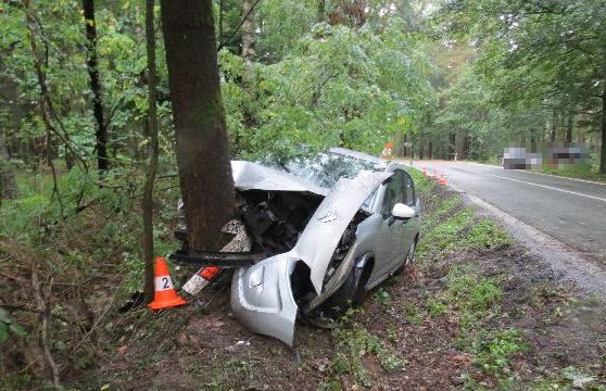 FOTO: Rychlou jízdu na mokru ukončil až strom vedle silnice. Řidič je v nemocnici