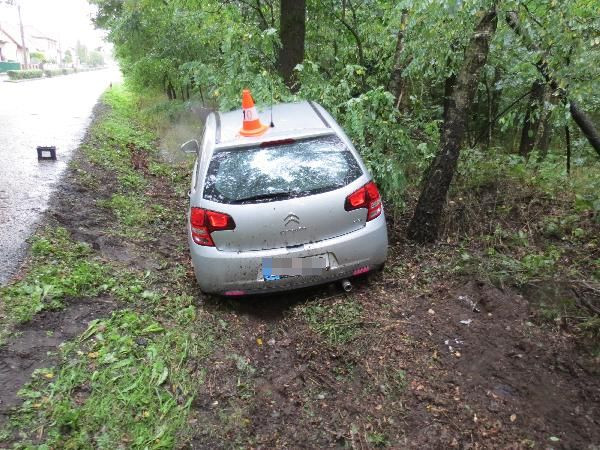 Rychlou jízdu na mokru ukončil až strom vedle silnice. Řidič je v nemocnici