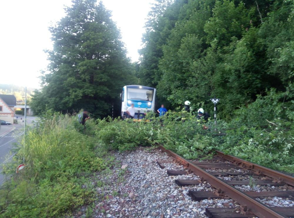 Kvůli silnému větru padaly v Královéhradeckém kraji stromy na silnice i na železnici