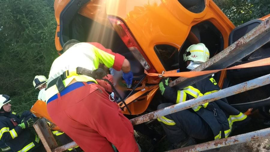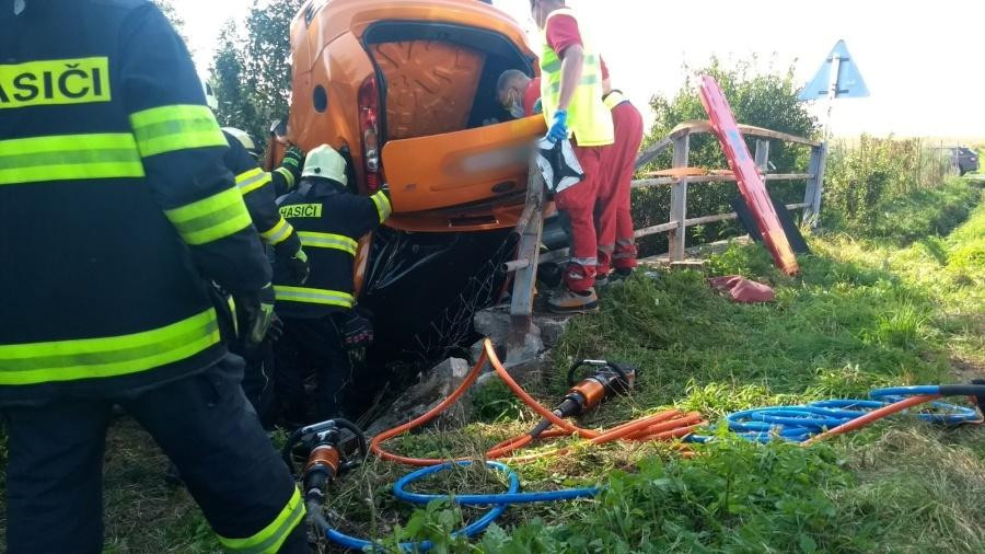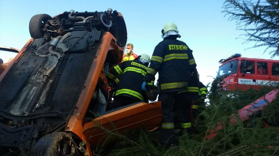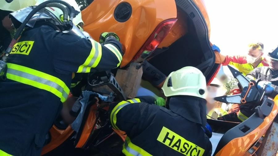 Hasiči vyprošťovali zaklíněného člověka po dopravní nehodě. Letět pro něj musel vrtulník