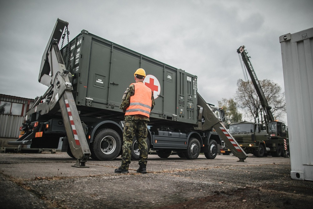 FOTO | VIDEO: Z Hradce dnes vyjede hlavní kolona vojenského konvoje s vybavením pro polní nemocnice v Letňanech