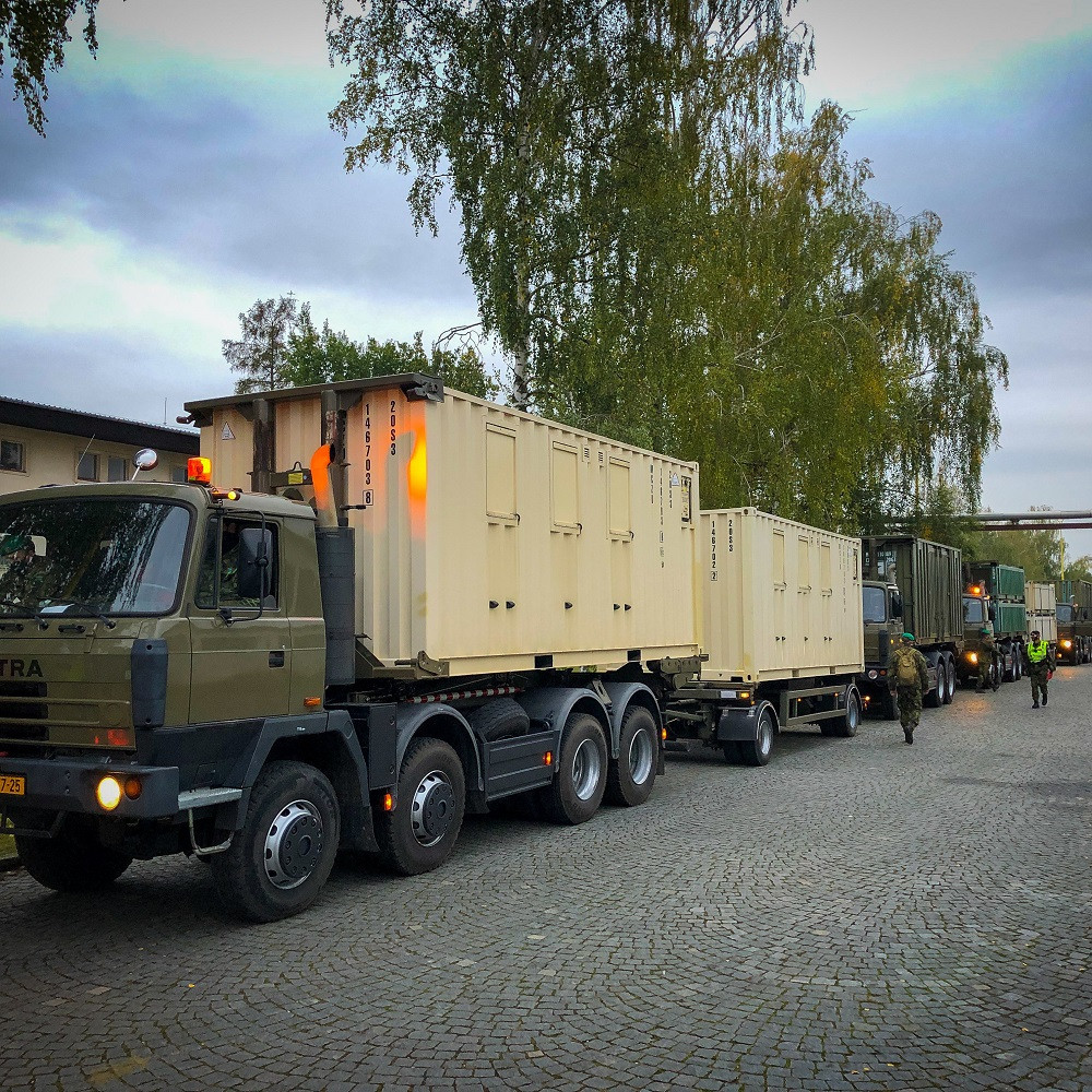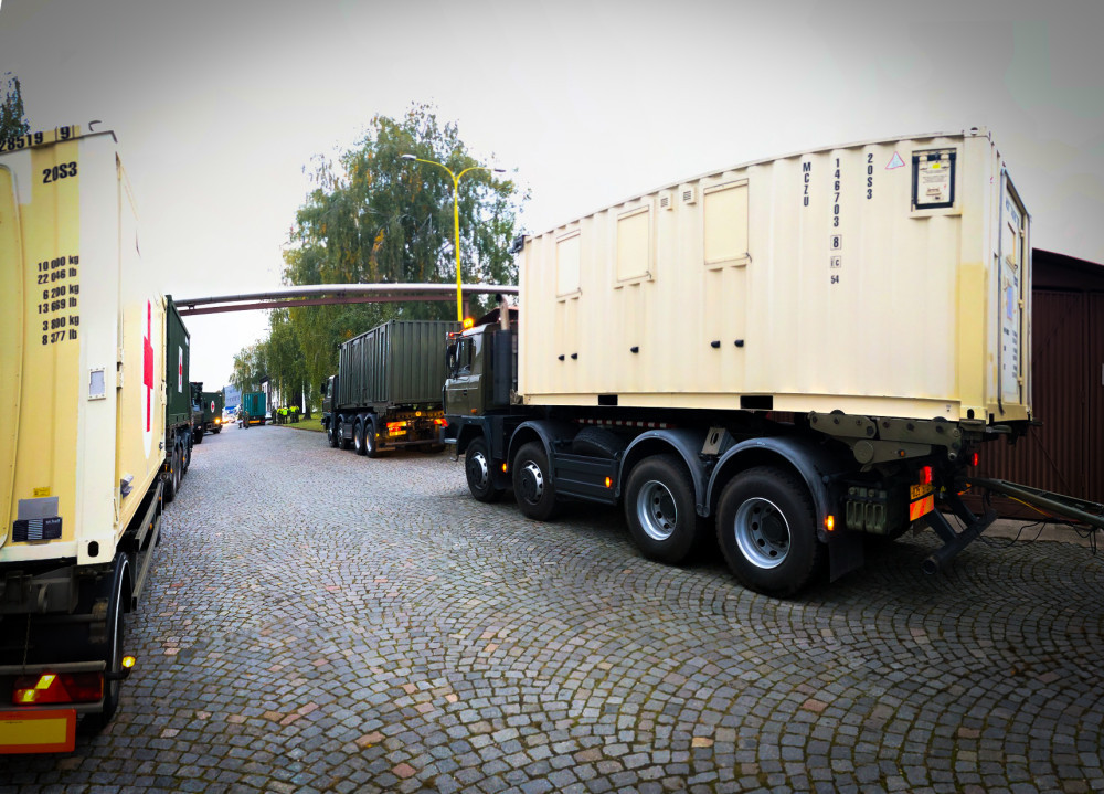 FOTO: V Letňanech začala stavba polní nemocnice. Část vybavení dorazilo z Hradce Králové