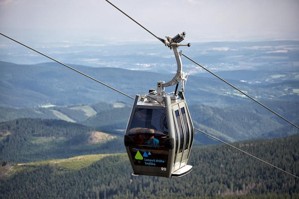 Silný vítr zastavil horní úsek kabinové lanovky na Sněžku