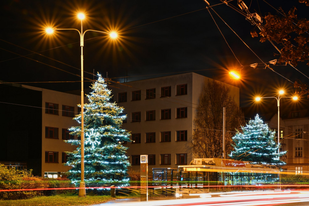 Dva vánoční stromy a desetitisíce žároviček. Takhle vypadá vánoční Hradec Králové