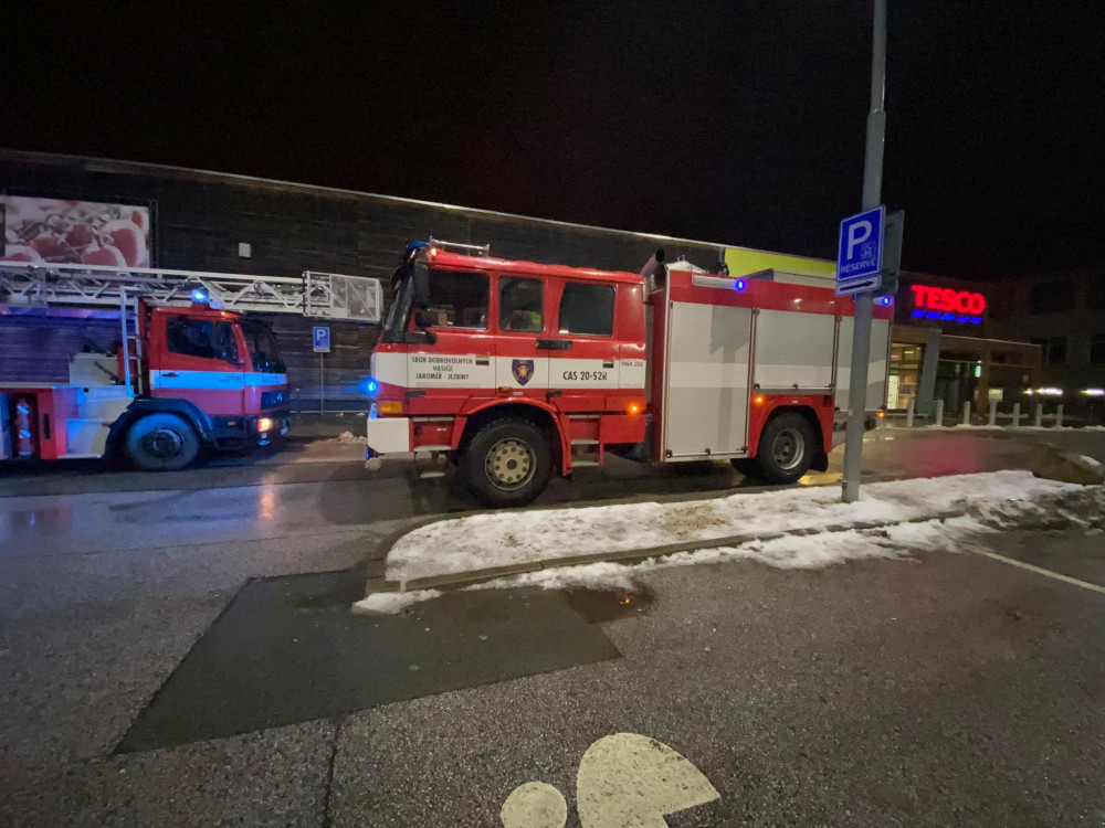 Hasiči zasahovali v obchodním domě v Jaroměři, hořelo na toaletách