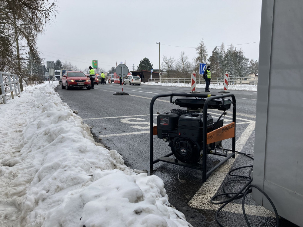 Nejvhodnější výstroj policistů na kontrolních stanovištích? Teplá výstroj, čaj a bageta