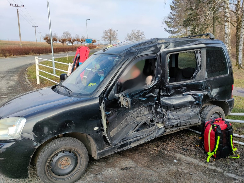V Milovicích u Hořic se srazila dvě auta, na místě byl i vrtulník