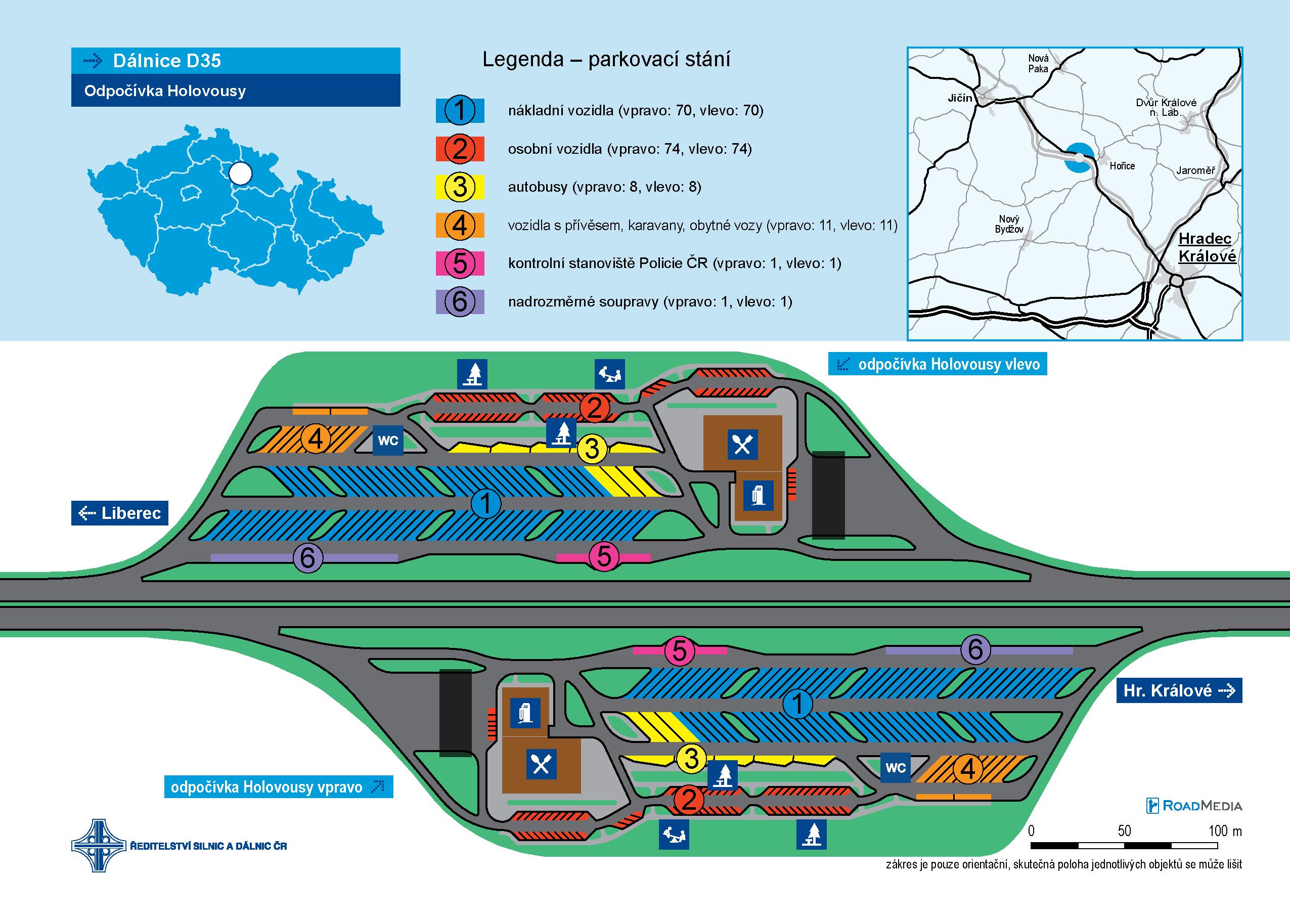 Velké parkoviště obklopí budoucí dálnici v obou směrech a řidičům osobních vozů nabídne 148 parkovacích stání. Na parkoviště se vejde dalších 140 kamionů, 22 karavanů a obytných vozů, 16 autobusů a dvě nadrozměrné soupravy.