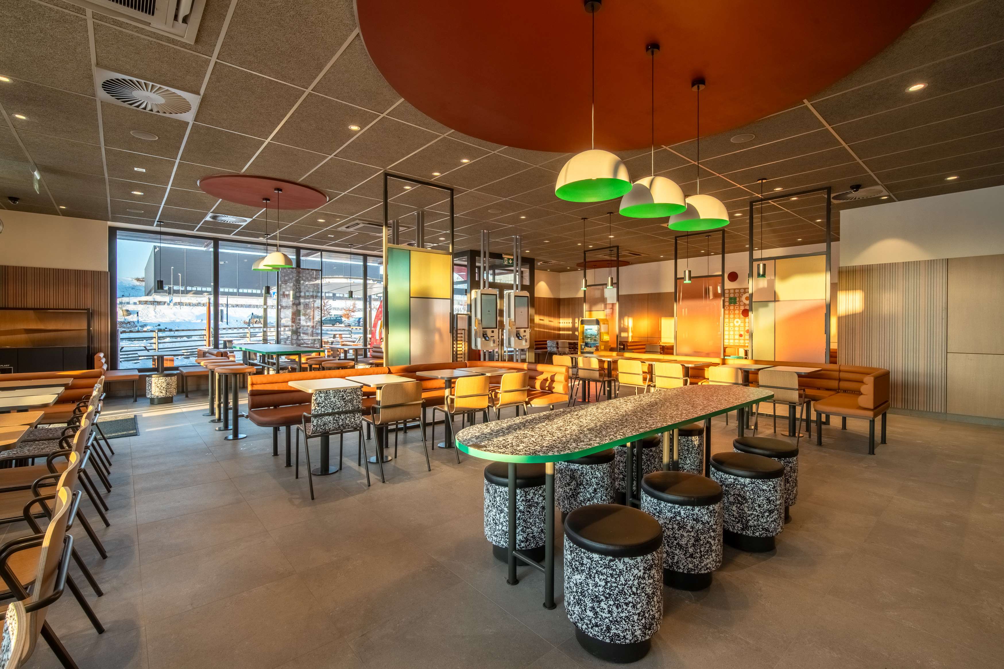 Jídlo lze objednat přímo u obsluhy nebo pohodlně a rychle na čtyřech samoobslužných kioscích. V menu zákazníci najdou kompletní portfolio produktů včetně snídaní a limitovaných nabídek. Řidiči ocení službu McDrive, díky které lze vyzvednout objednávky přímo z pohodlí vozu. Během zimy bude spuštěn i provoz služby McDelivery, která zajistí dovoz pokrmů až před práh.